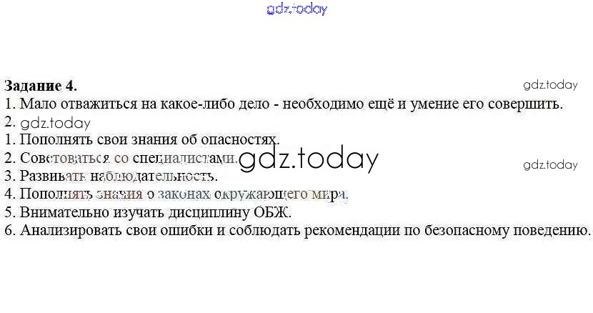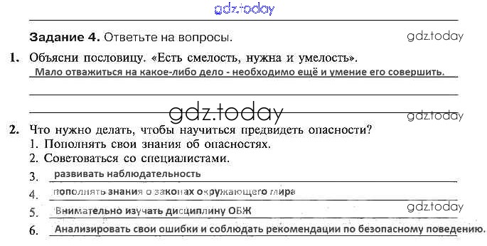На страницах сайта gdz.today вы найдете учебный и вспомогательный материал, направленный на улучшения знаний школьной программы. ГДЗ - онлайн мир знаний Решение к §3. Как научиться выявлять и предвидеть опасности 4 Рабочей тетради по ОБЖ для 5 класса Драновская Аст/Астрель 2014