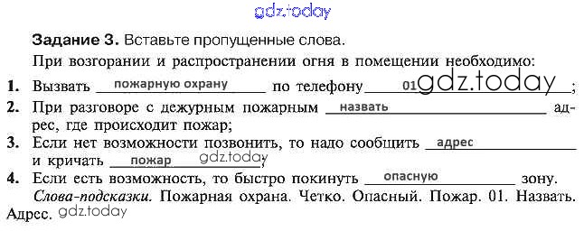 На страницах сайта gdz.today вы найдете учебный и вспомогательный материал, направленный на улучшения знаний школьной программы. ГДЗ - онлайн мир знаний Решение к §7. Пожары в жилище 3 Рабочей тетради по ОБЖ для 5 класса Драновская Аст/Астрель 2014