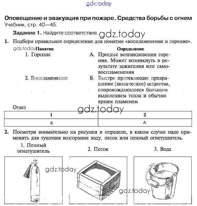Решение к §8. Оповещение и эвакуация при пожаре. Средства борьбы с огнем