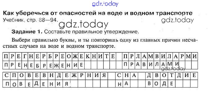 На страницах сайта gdz.today вы найдете учебный и вспомогательный материал, направленный на улучшения знаний школьной программы. ГДЗ - онлайн мир знаний Решение к §17. Как уберечься от опасностей на воде и водном транспорте 1 Рабочей тетради по ОБЖ для 5 класса Драновская Аст/Астрель 2014