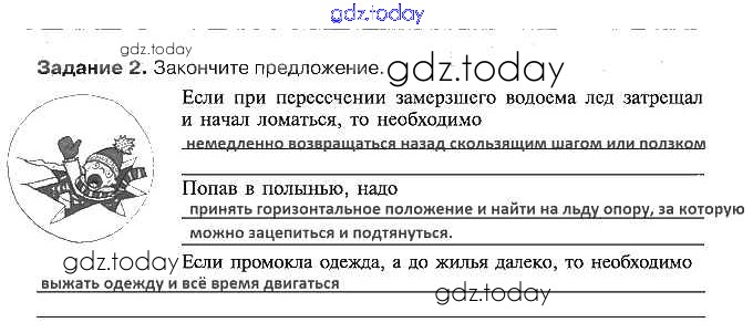 На страницах сайта gdz.today вы найдете учебный и вспомогательный материал, направленный на улучшения знаний школьной программы. ГДЗ - онлайн мир знаний Решение к §18. Опасности на льду 2 Рабочей тетради по ОБЖ для 5 класса Драновская Аст/Астрель 2014