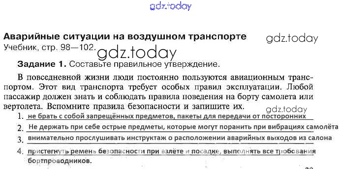 На страницах сайта gdz.today вы найдете учебный и вспомогательный материал, направленный на улучшения знаний школьной программы. ГДЗ - онлайн мир знаний Решение к §19. Аварийные ситуации на воздушном транспорте 1 Рабочей тетради по ОБЖ для 5 класса Драновская Аст/Астрель 2014