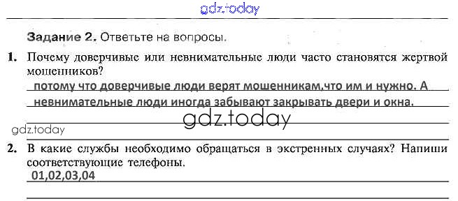 На страницах сайта gdz.today вы найдете учебный и вспомогательный материал, направленный на улучшения знаний школьной программы. ГДЗ - онлайн мир знаний Решение к §20. Как уберечь себя от преступлений 5 Рабочей тетради по ОБЖ для 5 класса Драновская Аст/Астрель 2014