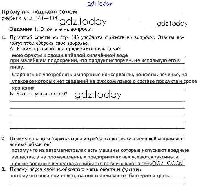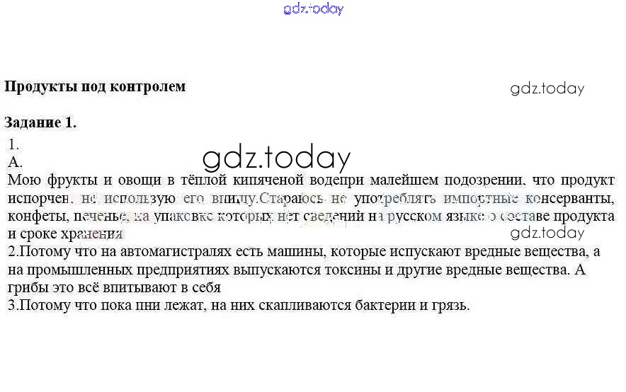 На страницах сайта gdz.today вы найдете учебный и вспомогательный материал, направленный на улучшения знаний школьной программы. ГДЗ - онлайн мир знаний Решение к §26. Продукты под контролем 1 Рабочей тетради по ОБЖ для 5 класса Драновская Аст/Астрель 2014