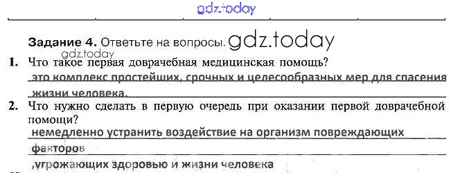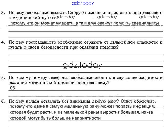 На страницах сайта gdz.today вы найдете учебный и вспомогательный материал, направленный на улучшения знаний школьной программы. ГДЗ - онлайн мир знаний Решение к §29. Что следует знать об оказании первой медицинской помощи (ПМП) 4 Рабочей тетради по ОБЖ для 5 класса Драновская Аст/Астрель 2014