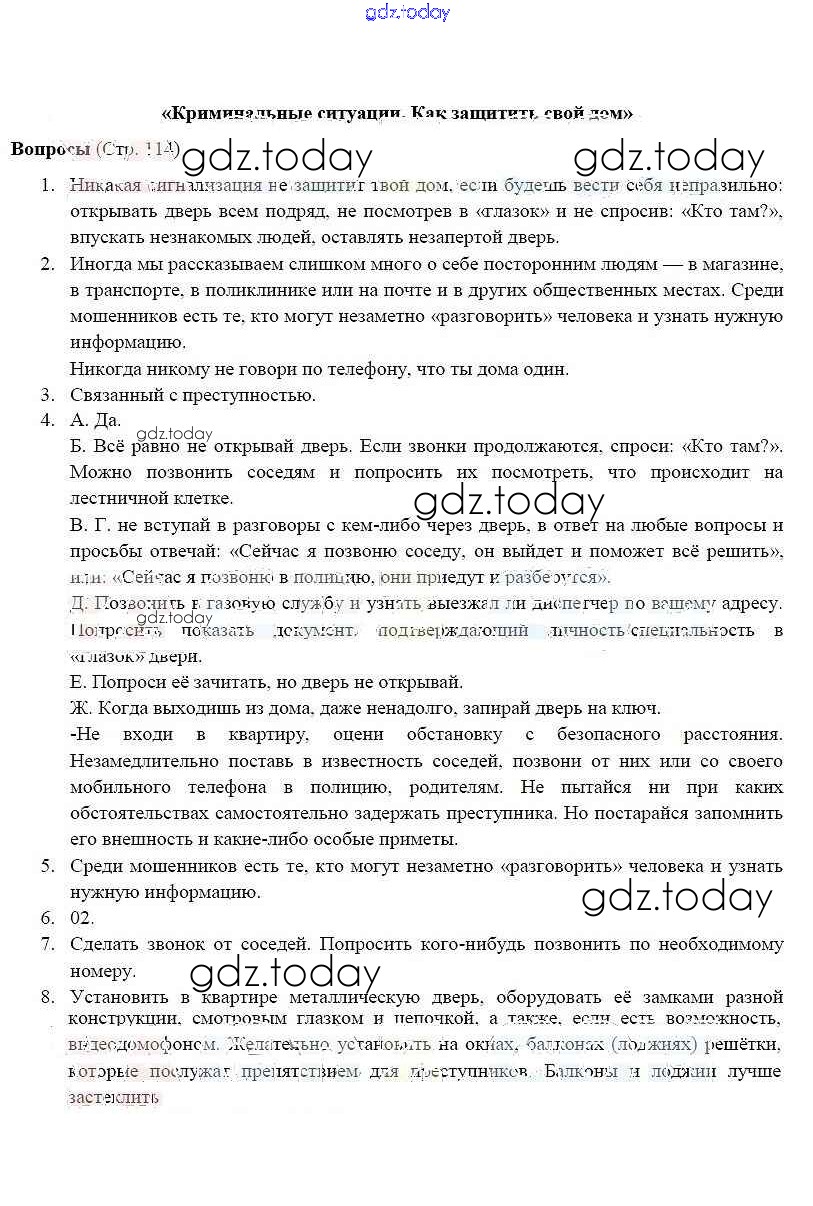 На страницах сайта gdz.today вы найдете учебный и вспомогательный материал, направленный на улучшения знаний школьной программы. ГДЗ - онлайн мир знаний Страницы (решение) 114 Учебнику по ОБЖ для 5 класса Фролов, Шолох Аст/Астрель 2015