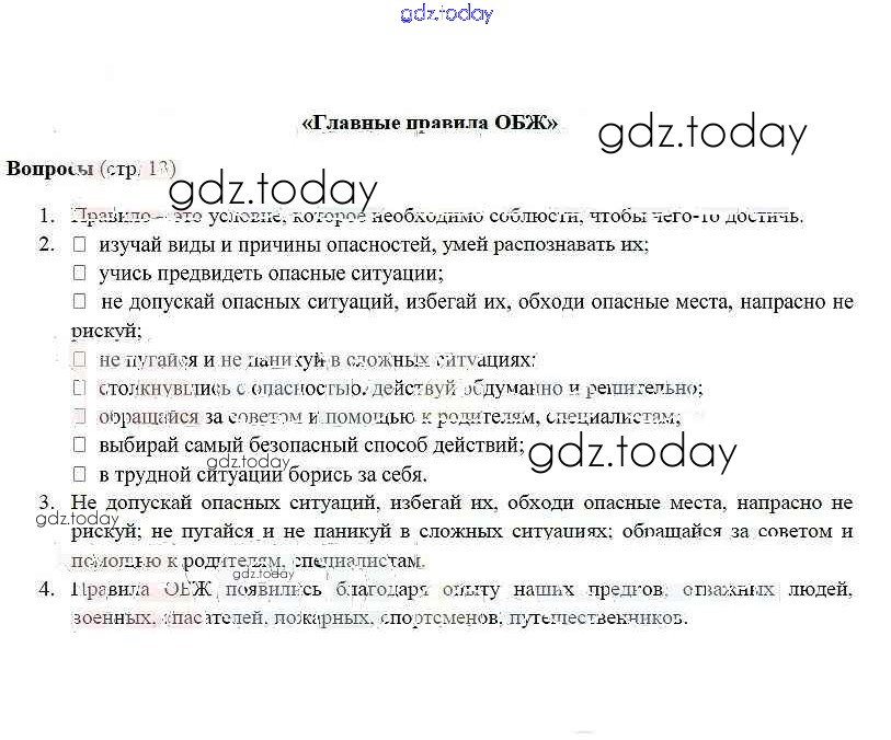 На страницах сайта gdz.today вы найдете учебный и вспомогательный материал, направленный на улучшения знаний школьной программы. ГДЗ - онлайн мир знаний Страницы (решение) 13 Учебнику по ОБЖ для 5 класса Фролов, Шолох Аст/Астрель 2015