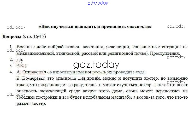 На страницах сайта gdz.today вы найдете учебный и вспомогательный материал, направленный на улучшения знаний школьной программы. ГДЗ - онлайн мир знаний Страницы (решение) 16-17 Учебнику по ОБЖ для 5 класса Фролов, Шолох Аст/Астрель 2015
