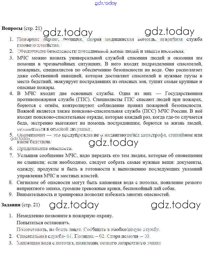 На страницах сайта gdz.today вы найдете учебный и вспомогательный материал, направленный на улучшения знаний школьной программы. ГДЗ - онлайн мир знаний Страницы (решение) 21 Учебнику по ОБЖ для 5 класса Фролов, Шолох Аст/Астрель 2015