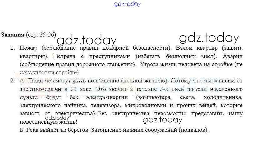 На страницах сайта gdz.today вы найдете учебный и вспомогательный материал, направленный на улучшения знаний школьной программы. ГДЗ - онлайн мир знаний Страницы (решение) 25-26 Учебнику по ОБЖ для 5 класса Фролов, Шолох Аст/Астрель 2015