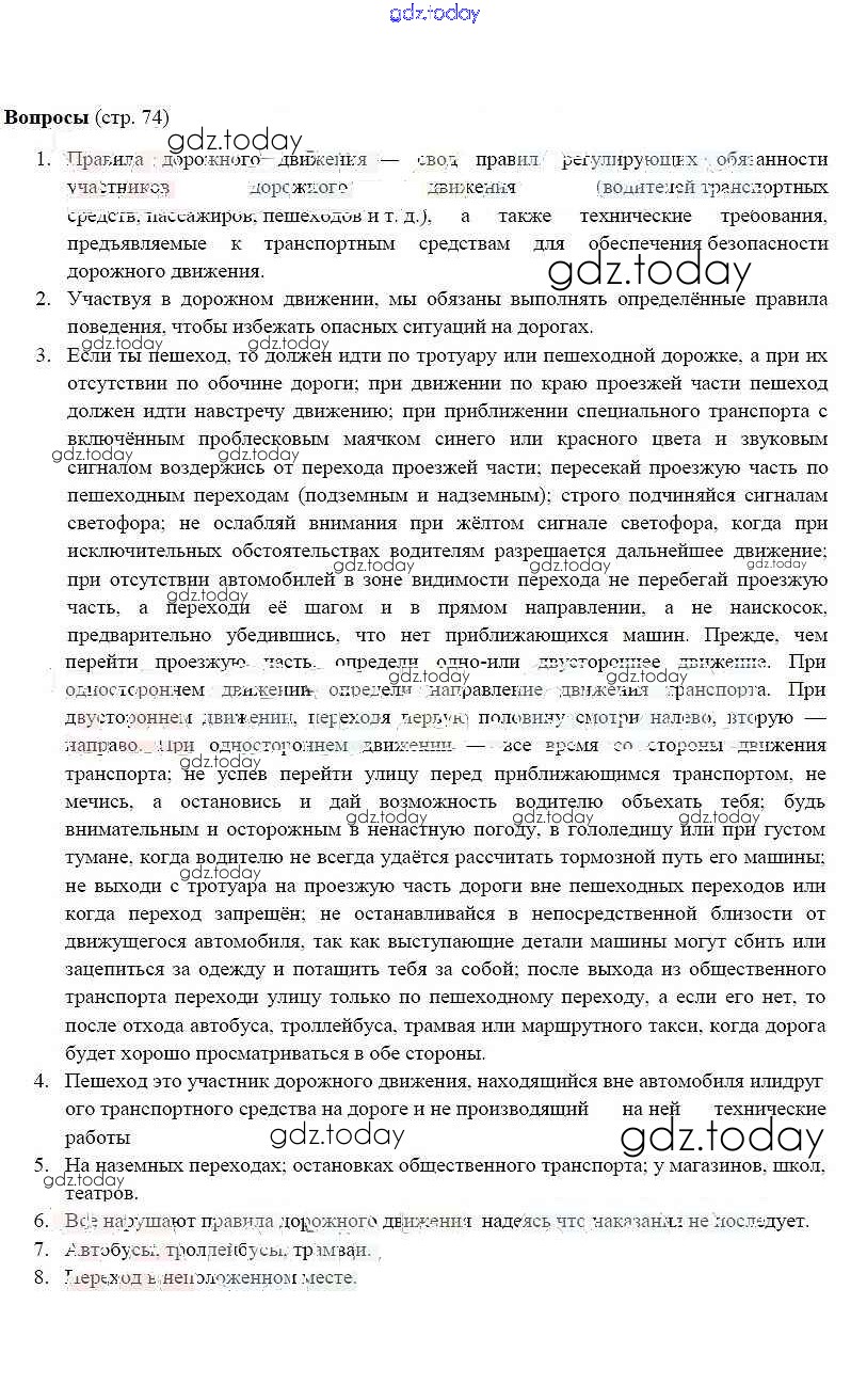 На страницах сайта gdz.today вы найдете учебный и вспомогательный материал, направленный на улучшения знаний школьной программы. ГДЗ - онлайн мир знаний Страницы (решение) 74 Учебнику по ОБЖ для 5 класса Фролов, Шолох Аст/Астрель 2015