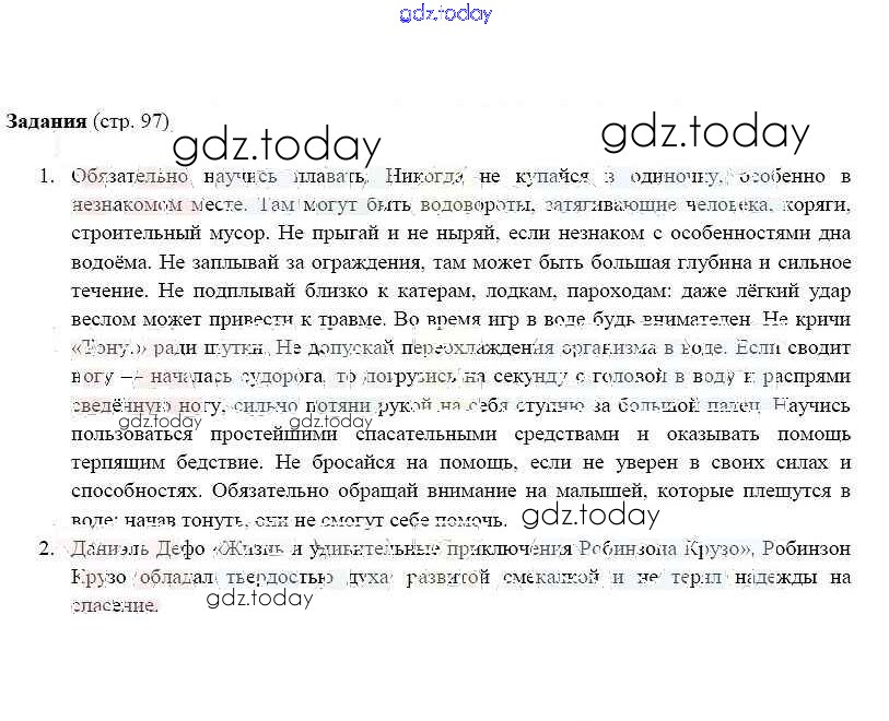 На страницах сайта gdz.today вы найдете учебный и вспомогательный материал, направленный на улучшения знаний школьной программы. ГДЗ - онлайн мир знаний Страницы (решение) 97 Учебнику по ОБЖ для 5 класса Фролов, Шолох Аст/Астрель 2015