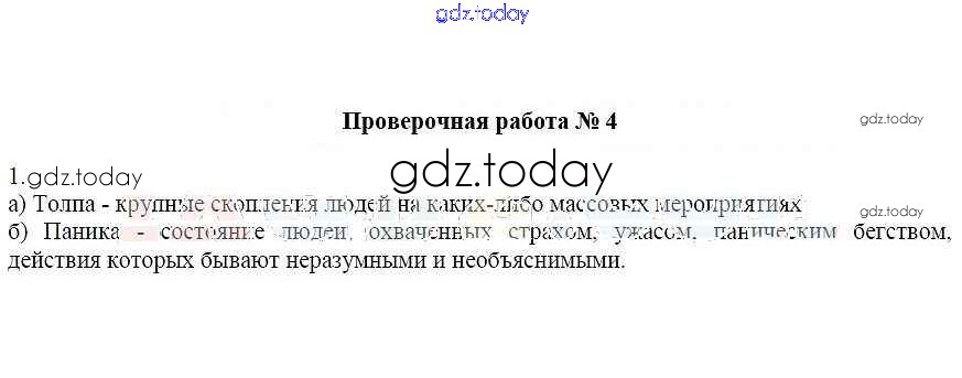 На страницах сайта gdz.today вы найдете учебный и вспомогательный материал, направленный на улучшения знаний школьной программы. ГДЗ - онлайн мир знаний Решение к проверочной работе №4 1 Тетради для оценки качества знаний по ОБЖ для 5 класса Латчук, Миронов Дрофа Вертикаль 2019