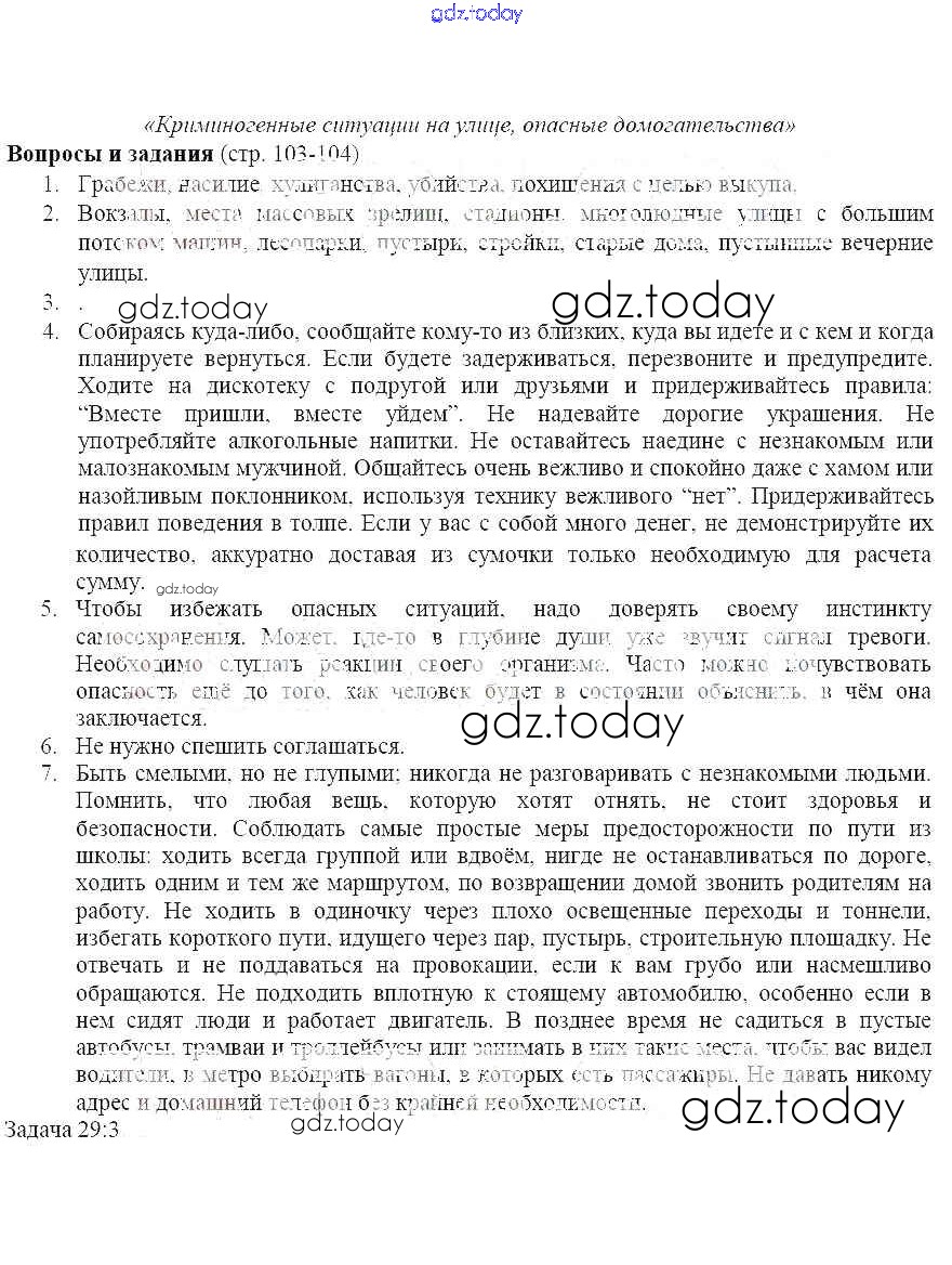 На страницах сайта gdz.today вы найдете учебный и вспомогательный материал, направленный на улучшения знаний школьной программы. ГДЗ - онлайн мир знаний Страницы (решение) 103-104 Учебнику по ОБЖ для 5 класса Поляков, Кузнецов Дрофа Вертикаль 2015