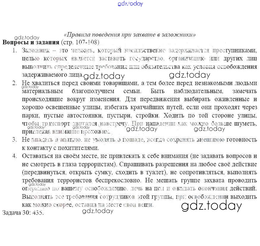 На страницах сайта gdz.today вы найдете учебный и вспомогательный материал, направленный на улучшения знаний школьной программы. ГДЗ - онлайн мир знаний Страницы (решение) 107-108 Учебнику по ОБЖ для 5 класса Поляков, Кузнецов Дрофа Вертикаль 2015