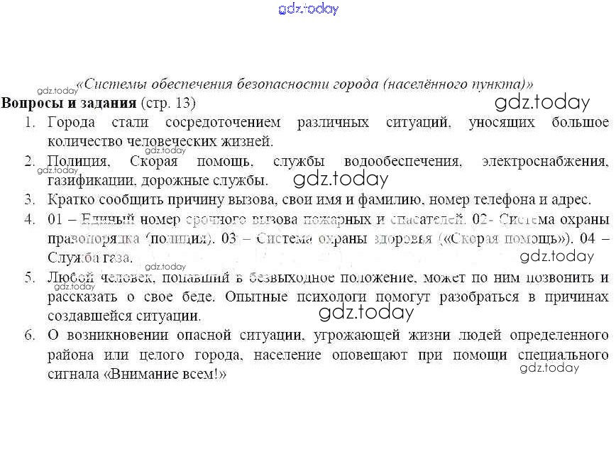 На страницах сайта gdz.today вы найдете учебный и вспомогательный материал, направленный на улучшения знаний школьной программы. ГДЗ - онлайн мир знаний Страницы (решение) 13 Учебнику по ОБЖ для 5 класса Поляков, Кузнецов Дрофа Вертикаль 2015