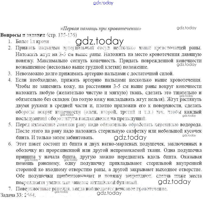 На страницах сайта gdz.today вы найдете учебный и вспомогательный материал, направленный на улучшения знаний школьной программы. ГДЗ - онлайн мир знаний Страницы (решение) 135-136 Учебнику по ОБЖ для 5 класса Поляков, Кузнецов Дрофа Вертикаль 2015