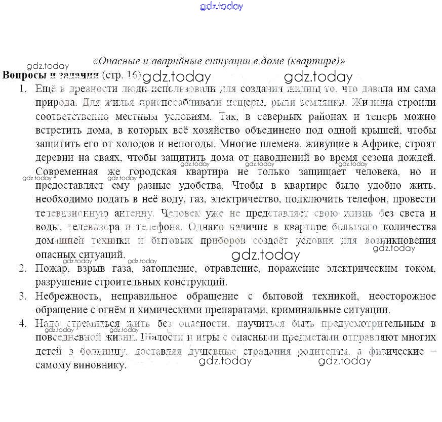На страницах сайта gdz.today вы найдете учебный и вспомогательный материал, направленный на улучшения знаний школьной программы. ГДЗ - онлайн мир знаний Страницы (решение) 16 Учебнику по ОБЖ для 5 класса Поляков, Кузнецов Дрофа Вертикаль 2015