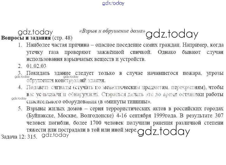 На страницах сайта gdz.today вы найдете учебный и вспомогательный материал, направленный на улучшения знаний школьной программы. ГДЗ - онлайн мир знаний Страницы (решение) 48 Учебнику по ОБЖ для 5 класса Поляков, Кузнецов Дрофа Вертикаль 2015