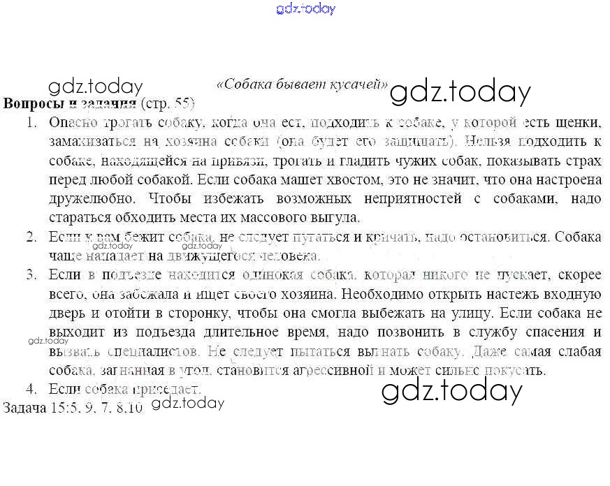 На страницах сайта gdz.today вы найдете учебный и вспомогательный материал, направленный на улучшения знаний школьной программы. ГДЗ - онлайн мир знаний Страницы (решение) 55 Учебнику по ОБЖ для 5 класса Поляков, Кузнецов Дрофа Вертикаль 2015