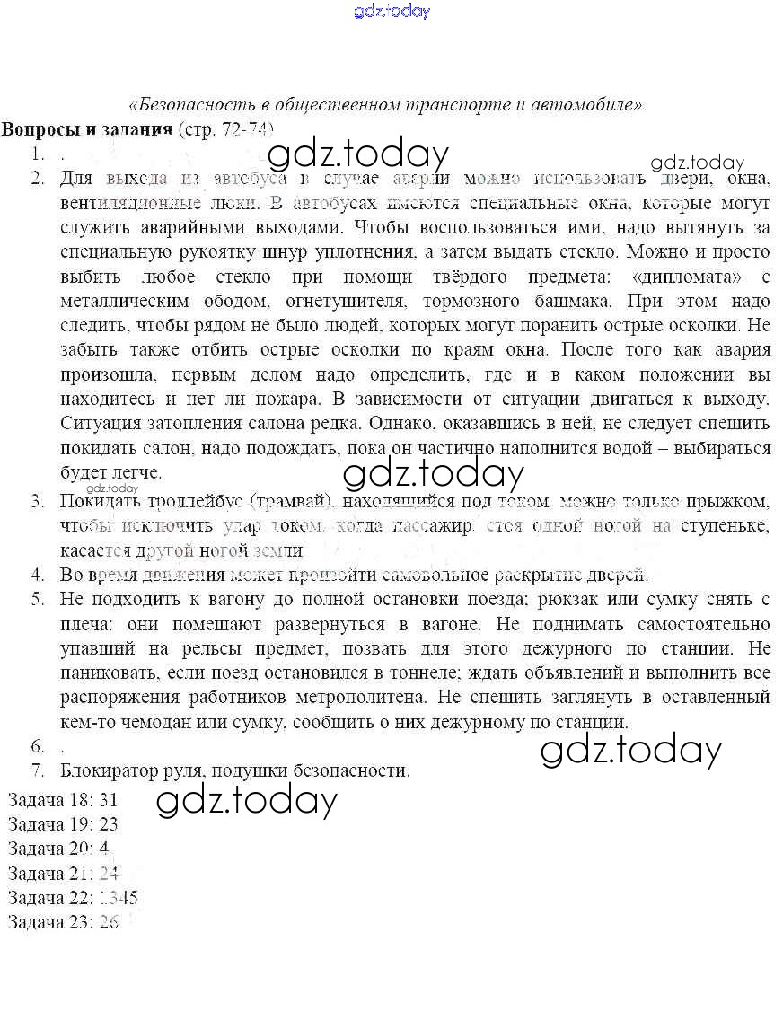 На страницах сайта gdz.today вы найдете учебный и вспомогательный материал, направленный на улучшения знаний школьной программы. ГДЗ - онлайн мир знаний Страницы (решение) 72-74 Учебнику по ОБЖ для 5 класса Поляков, Кузнецов Дрофа Вертикаль 2015