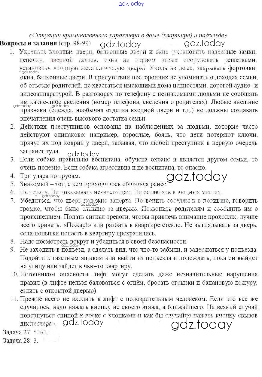 На страницах сайта gdz.today вы найдете учебный и вспомогательный материал, направленный на улучшения знаний школьной программы. ГДЗ - онлайн мир знаний Страницы (решение) 98-99 Учебнику по ОБЖ для 5 класса Поляков, Кузнецов Дрофа Вертикаль 2015