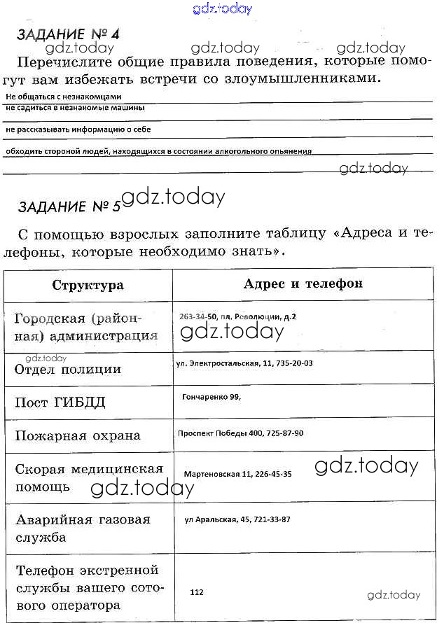 Ответы к Решение к главе 1 §4 Рабочей тетради по ОБЖ для 5 класса Смирнов, Хренников Просвещение 2019
