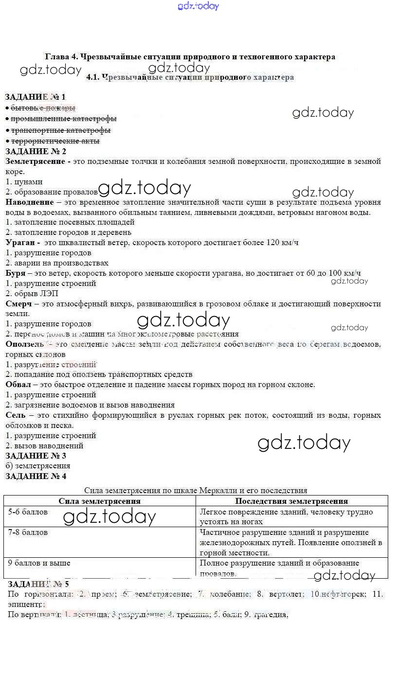 Ответы к Решение к главе 4 §1 Рабочей тетради по ОБЖ для 5 класса Смирнов, Хренников Просвещение 2019