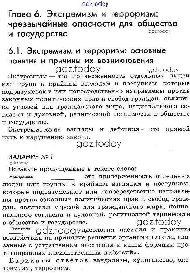На страницах сайта gdz.today вы найдете учебный и вспомогательный материал, направленный на улучшения знаний школьной программы. ГДЗ - онлайн мир знаний Решение к главе 6 §1 Рабочей тетради по ОБЖ для 5 класса Смирнов, Хренников Просвещение 2019