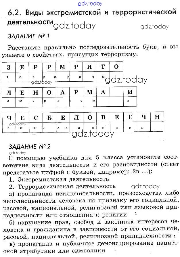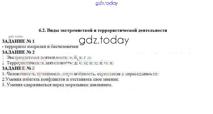 На страницах сайта gdz.today вы найдете учебный и вспомогательный материал, направленный на улучшения знаний школьной программы. ГДЗ - онлайн мир знаний Решение к главе 6 §2 Рабочей тетради по ОБЖ для 5 класса Смирнов, Хренников Просвещение 2019