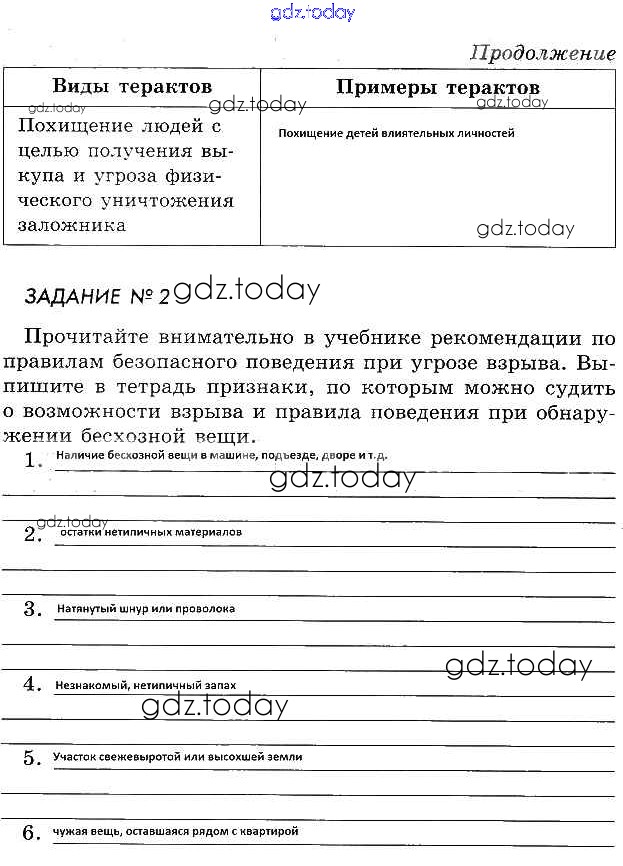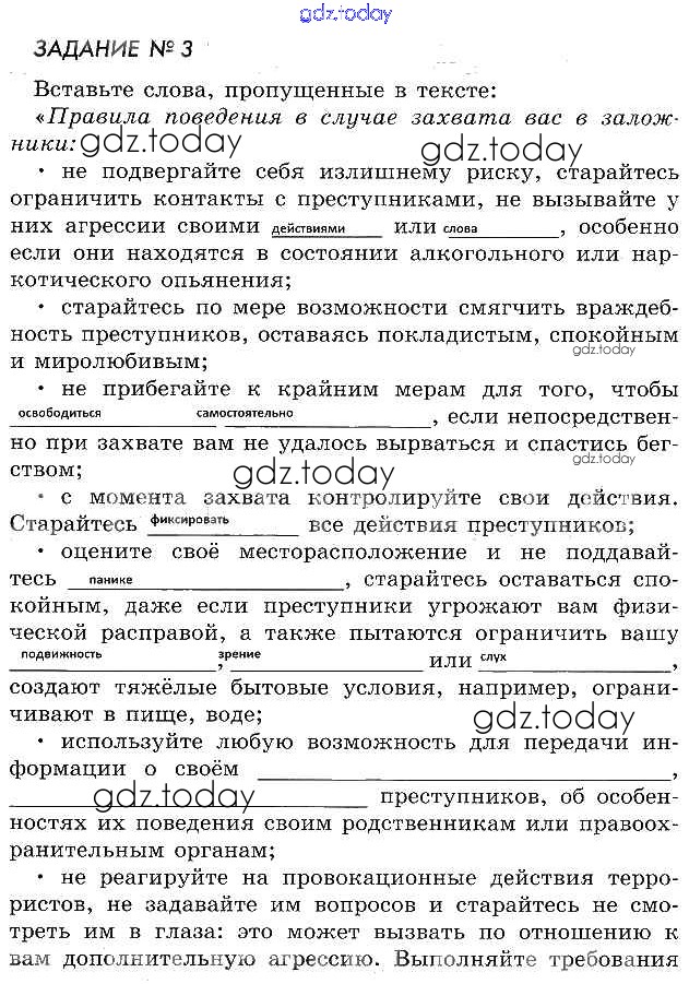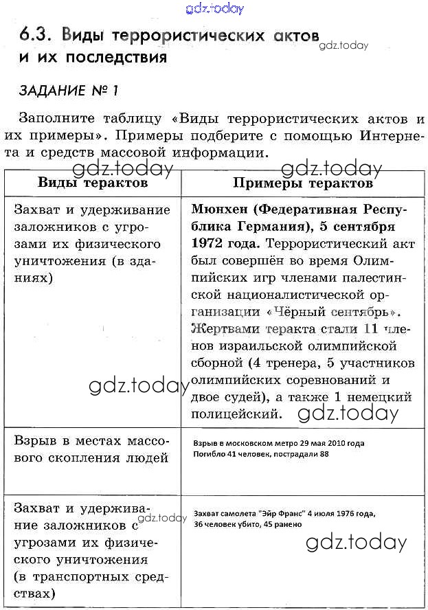 На страницах сайта gdz.today вы найдете учебный и вспомогательный материал, направленный на улучшения знаний школьной программы. ГДЗ - онлайн мир знаний Решение к главе 6 §3 Рабочей тетради по ОБЖ для 5 класса Смирнов, Хренников Просвещение 2019