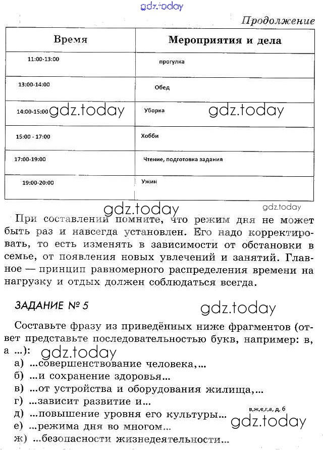 Ответы к Решение к главе 7 §1 Рабочей тетради по ОБЖ для 5 класса Смирнов, Хренников Просвещение 2019