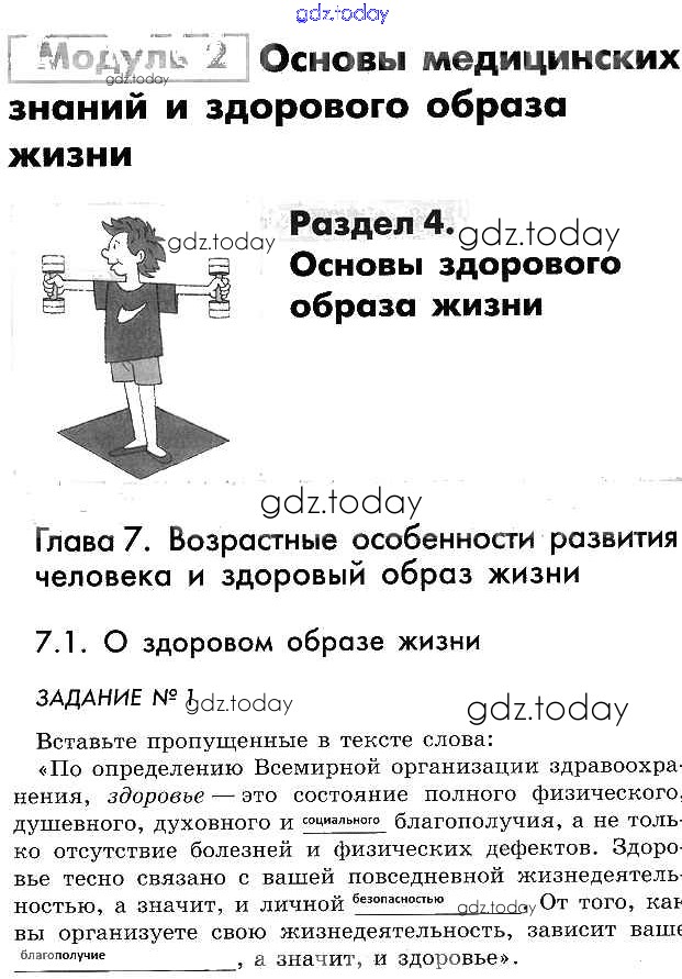 На страницах сайта gdz.today вы найдете учебный и вспомогательный материал, направленный на улучшения знаний школьной программы. ГДЗ - онлайн мир знаний Решение к главе 7 §1 Рабочей тетради по ОБЖ для 5 класса Смирнов, Хренников Просвещение 2019