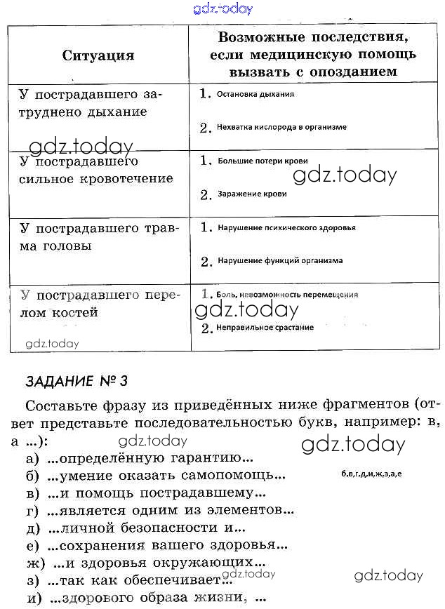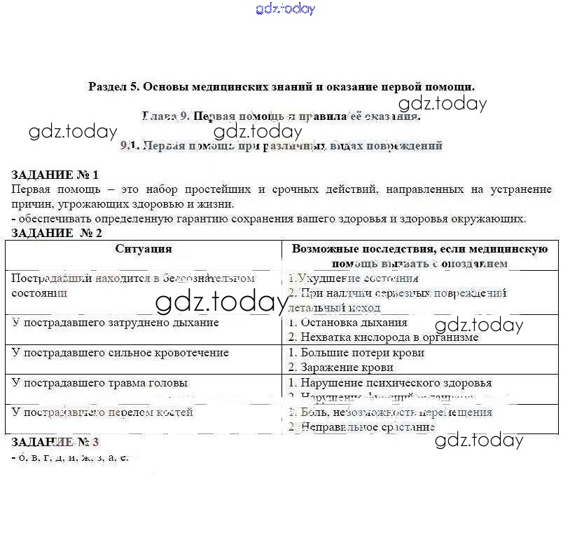 Ответы к Решение к главе 9 §1 Рабочей тетради по ОБЖ для 5 класса Смирнов, Хренников Просвещение 2019