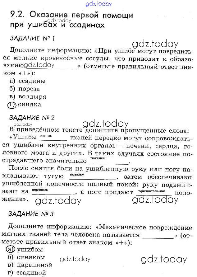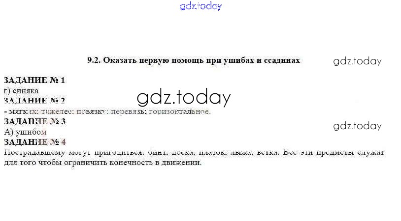 Ответы к Решение к главе 9 §2 Рабочей тетради по ОБЖ для 5 класса Смирнов, Хренников Просвещение 2019