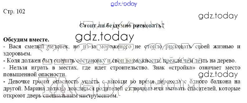 На страницах сайта gdz.today вы найдете учебный и вспомогательный материал, направленный на улучшения знаний школьной программы. ГДЗ - онлайн мир знаний Страницы (решение) 102 Учебнику по ОБЖ для 5-6 класса Виноградова, Смирнов Вентана-граф 2020