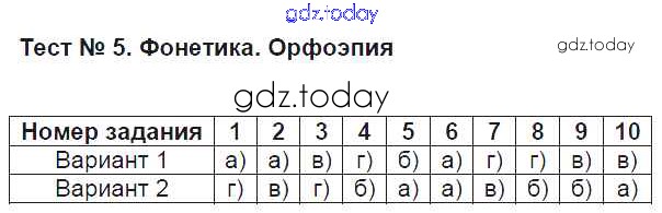 Ответы к Решение к тестам 5 Тематическим тестам по Русскому языку для 5 класса Каськова Просвещение УМК 2016