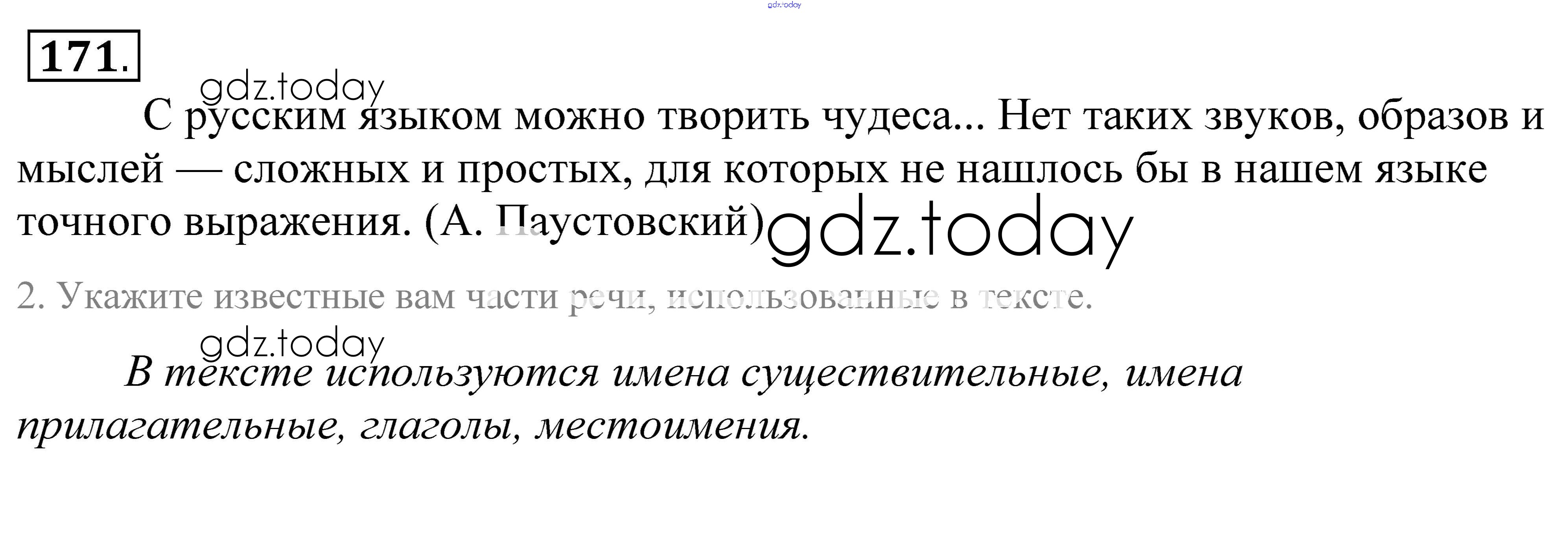 На страницах сайта gdz.today вы найдете учебный и вспомогательный материал, направленный на улучшения знаний школьной программы. ГДЗ - онлайн мир знаний Решение к упражнениям 171 Учебнику по Русскому языку для 5 класса Купалова, Еремеева Дрофа 2015