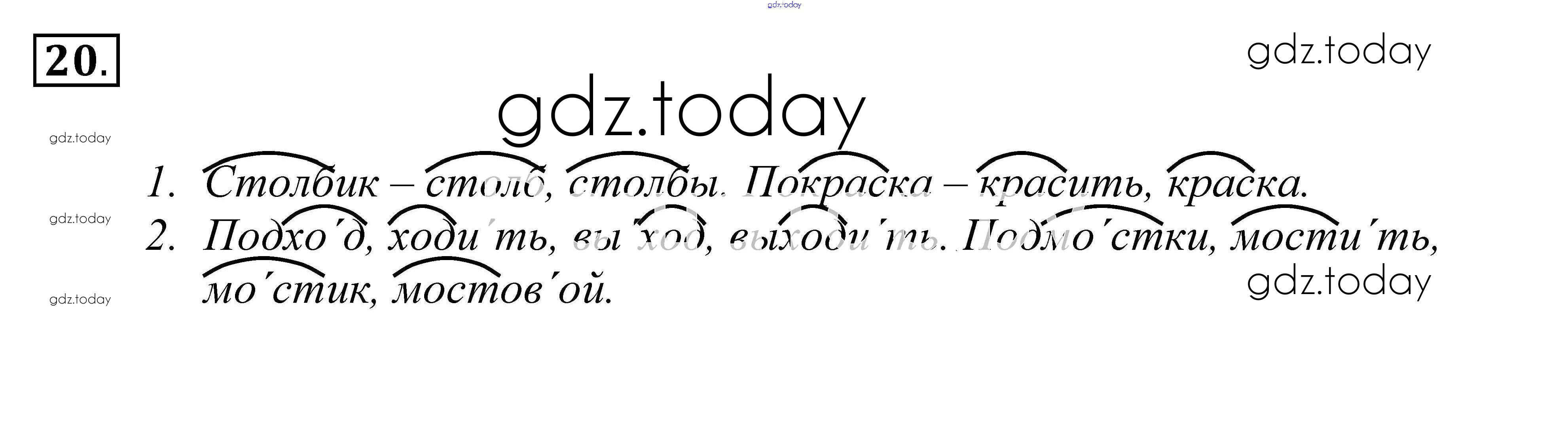 На страницах сайта gdz.today вы найдете учебный и вспомогательный материал, направленный на улучшения знаний школьной программы. ГДЗ - онлайн мир знаний Решение к упражнениям 20 Учебнику по Русскому языку для 5 класса Купалова, Еремеева Дрофа 2015