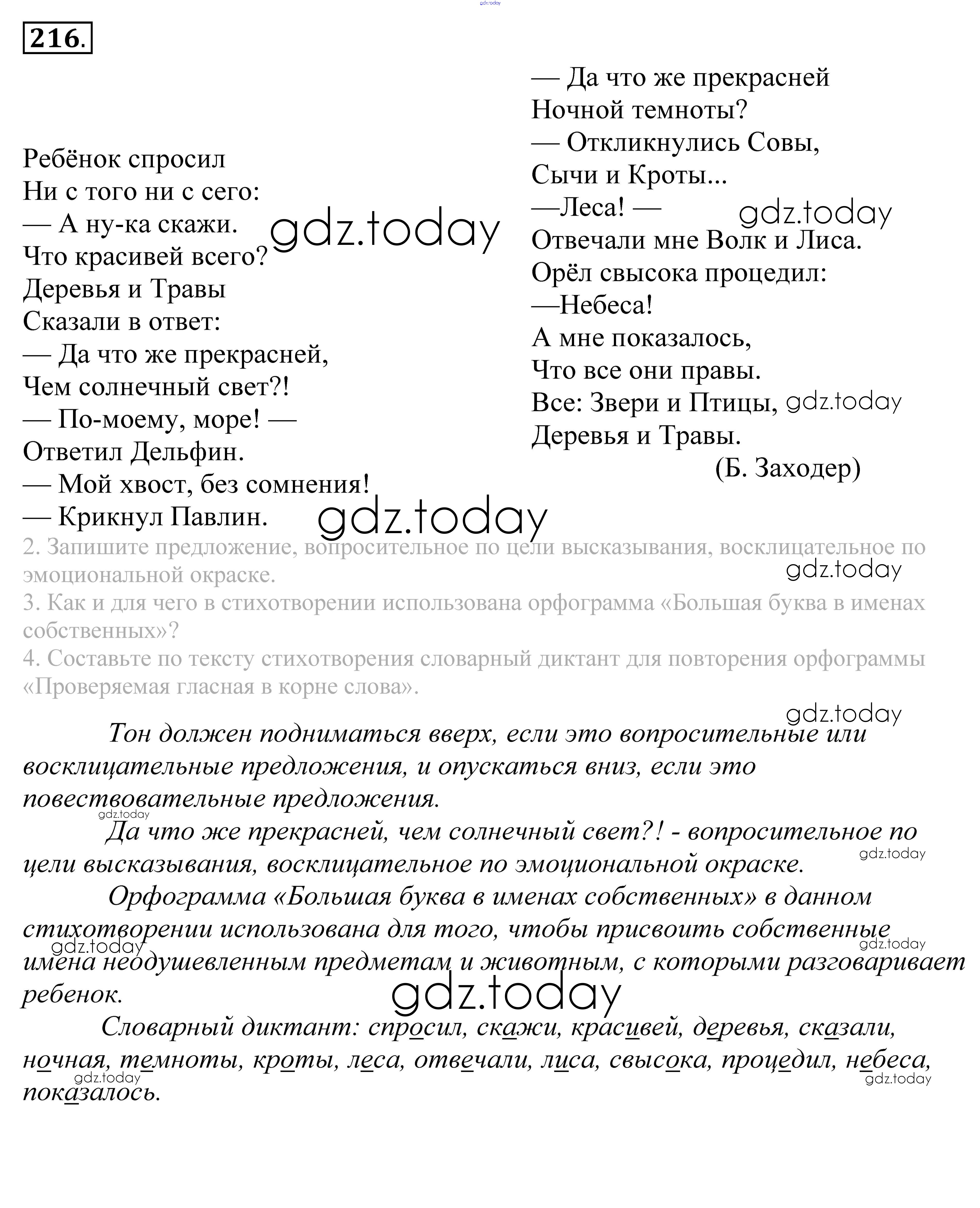 На страницах сайта gdz.today вы найдете учебный и вспомогательный материал, направленный на улучшения знаний школьной программы. ГДЗ - онлайн мир знаний Решение к упражнениям 216 Учебнику по Русскому языку для 5 класса Купалова, Еремеева Дрофа 2015