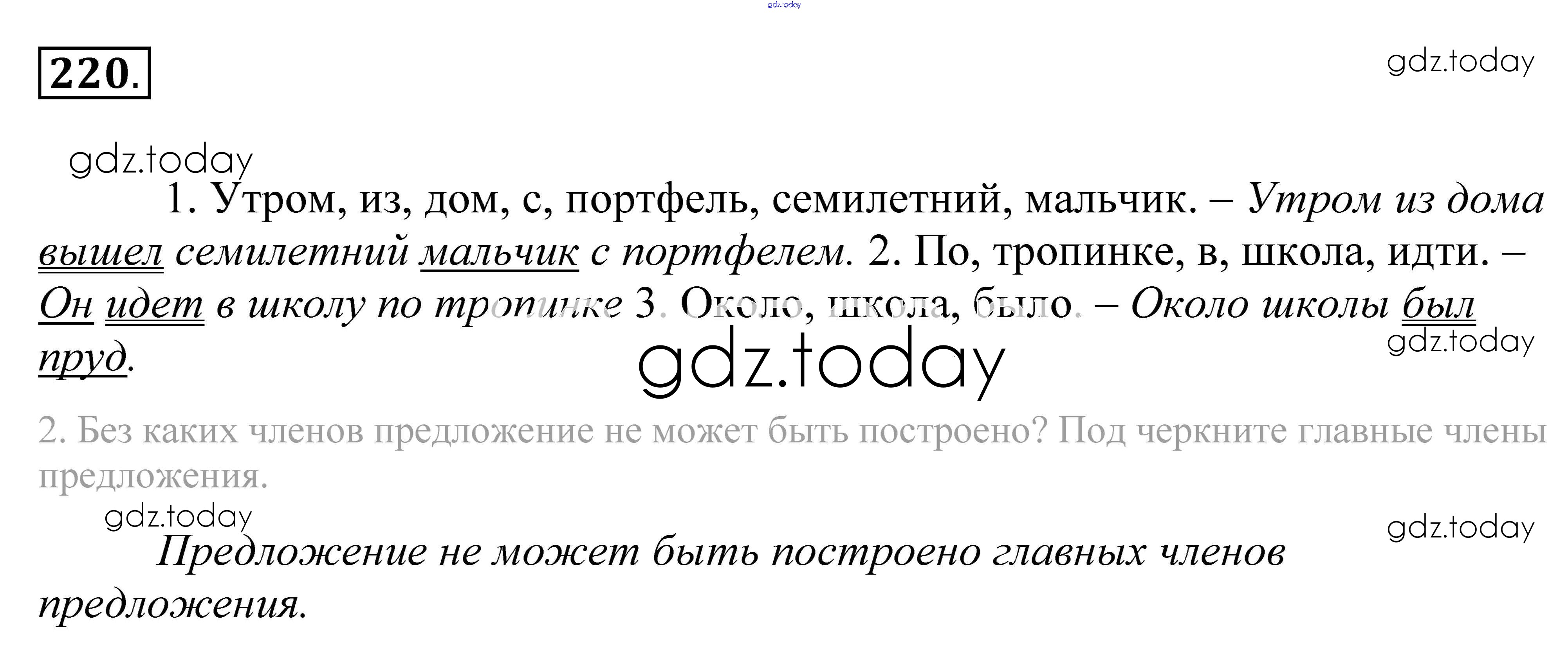 На страницах сайта gdz.today вы найдете учебный и вспомогательный материал, направленный на улучшения знаний школьной программы. ГДЗ - онлайн мир знаний Решение к упражнениям 220 Учебнику по Русскому языку для 5 класса Купалова, Еремеева Дрофа 2015
