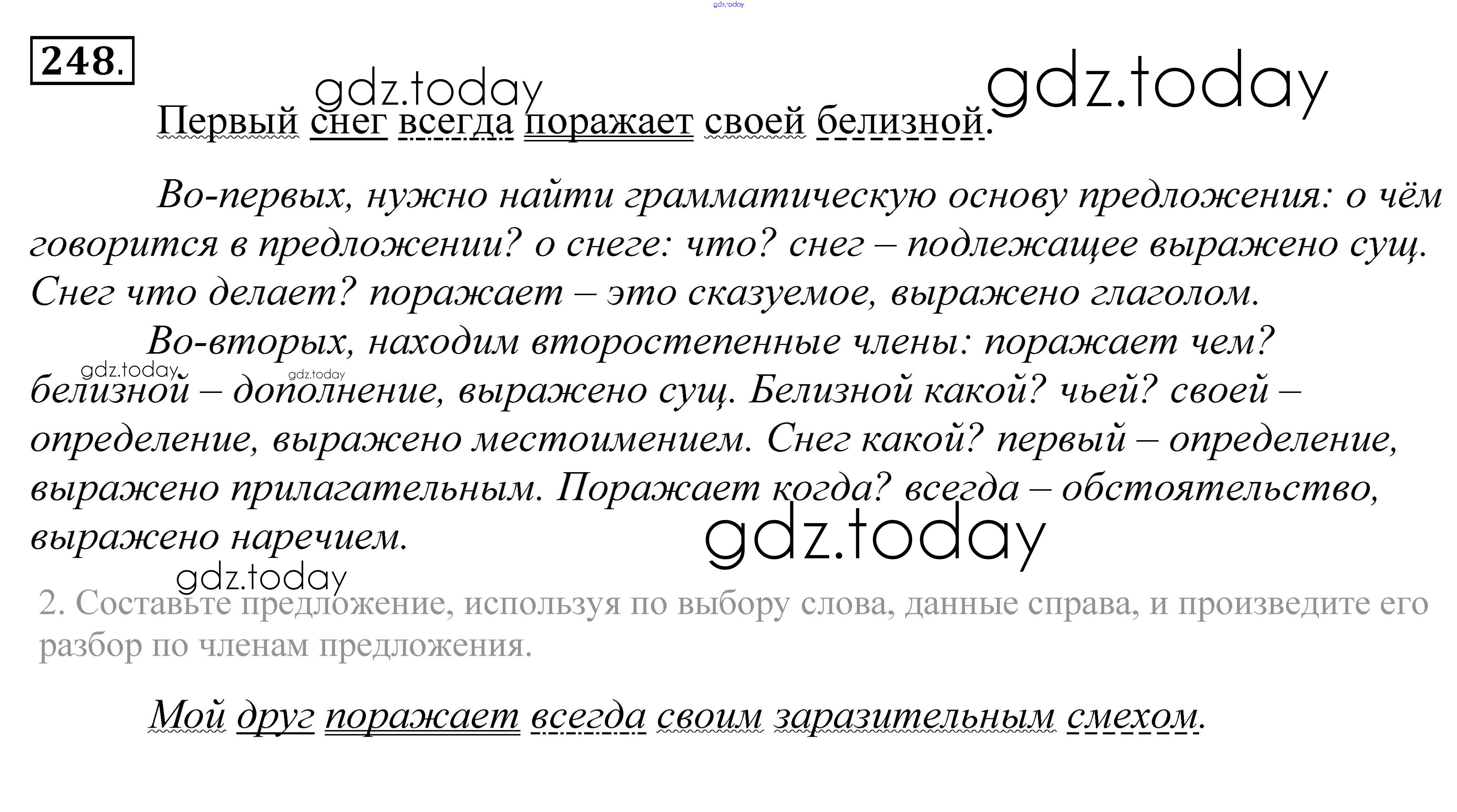 На страницах сайта gdz.today вы найдете учебный и вспомогательный материал, направленный на улучшения знаний школьной программы. ГДЗ - онлайн мир знаний Решение к упражнениям 248 Учебнику по Русскому языку для 5 класса Купалова, Еремеева Дрофа 2015