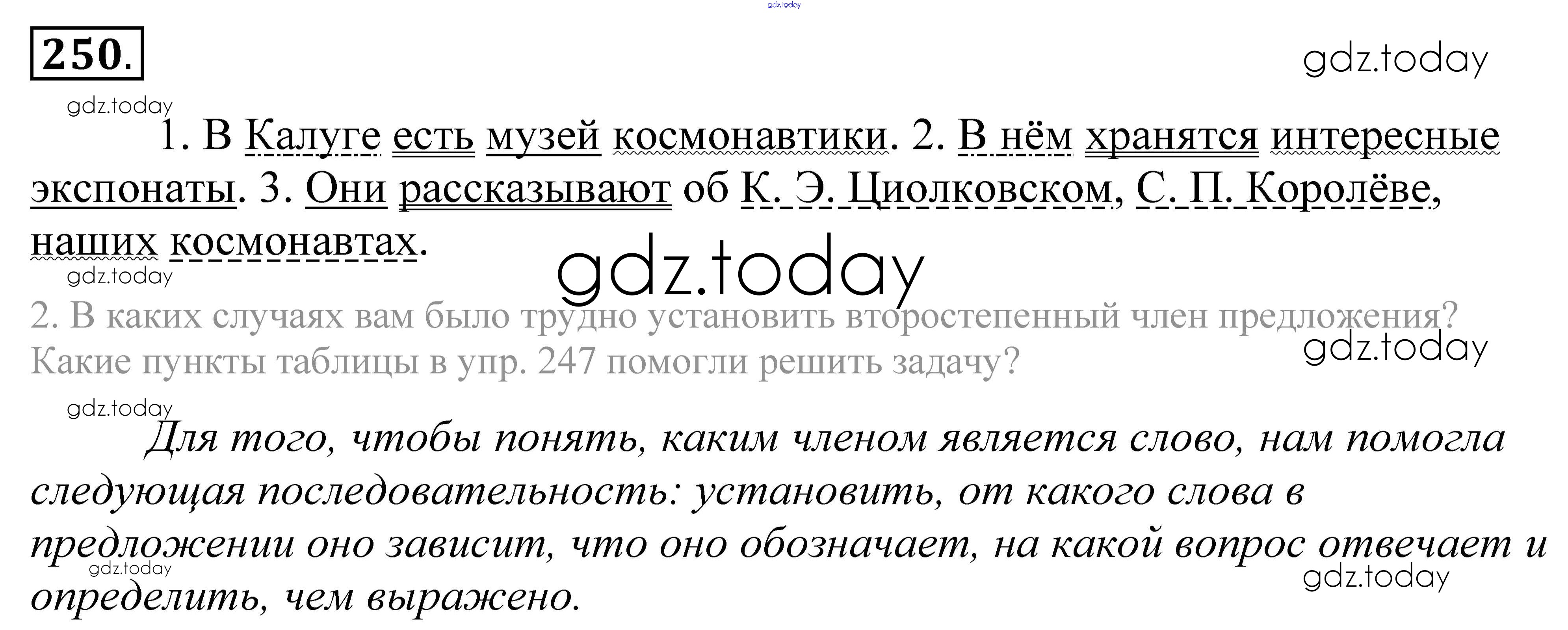 На страницах сайта gdz.today вы найдете учебный и вспомогательный материал, направленный на улучшения знаний школьной программы. ГДЗ - онлайн мир знаний Решение к упражнениям 250 Учебнику по Русскому языку для 5 класса Купалова, Еремеева Дрофа 2015