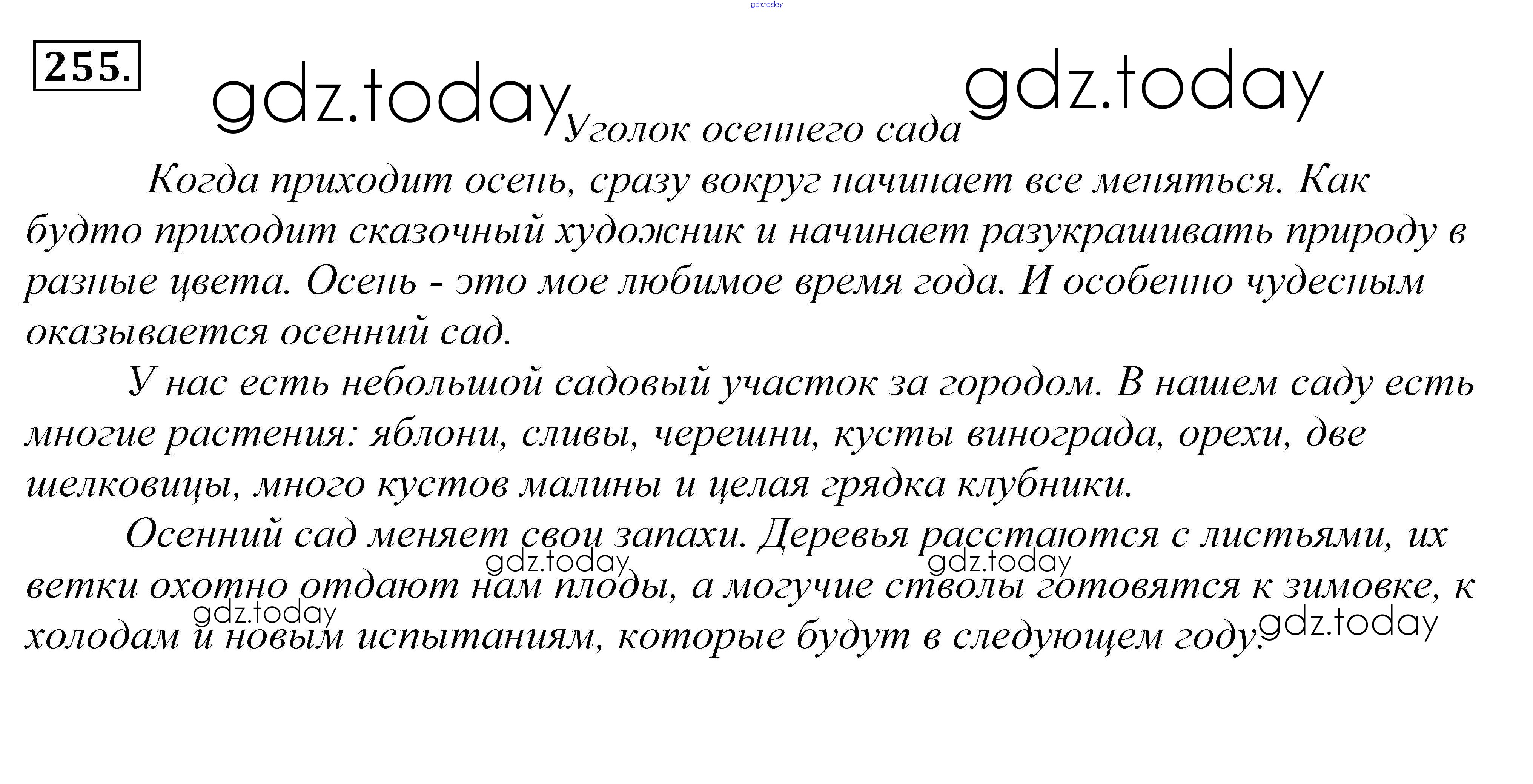 На страницах сайта gdz.today вы найдете учебный и вспомогательный материал, направленный на улучшения знаний школьной программы. ГДЗ - онлайн мир знаний Решение к упражнениям 255 Учебнику по Русскому языку для 5 класса Купалова, Еремеева Дрофа 2015