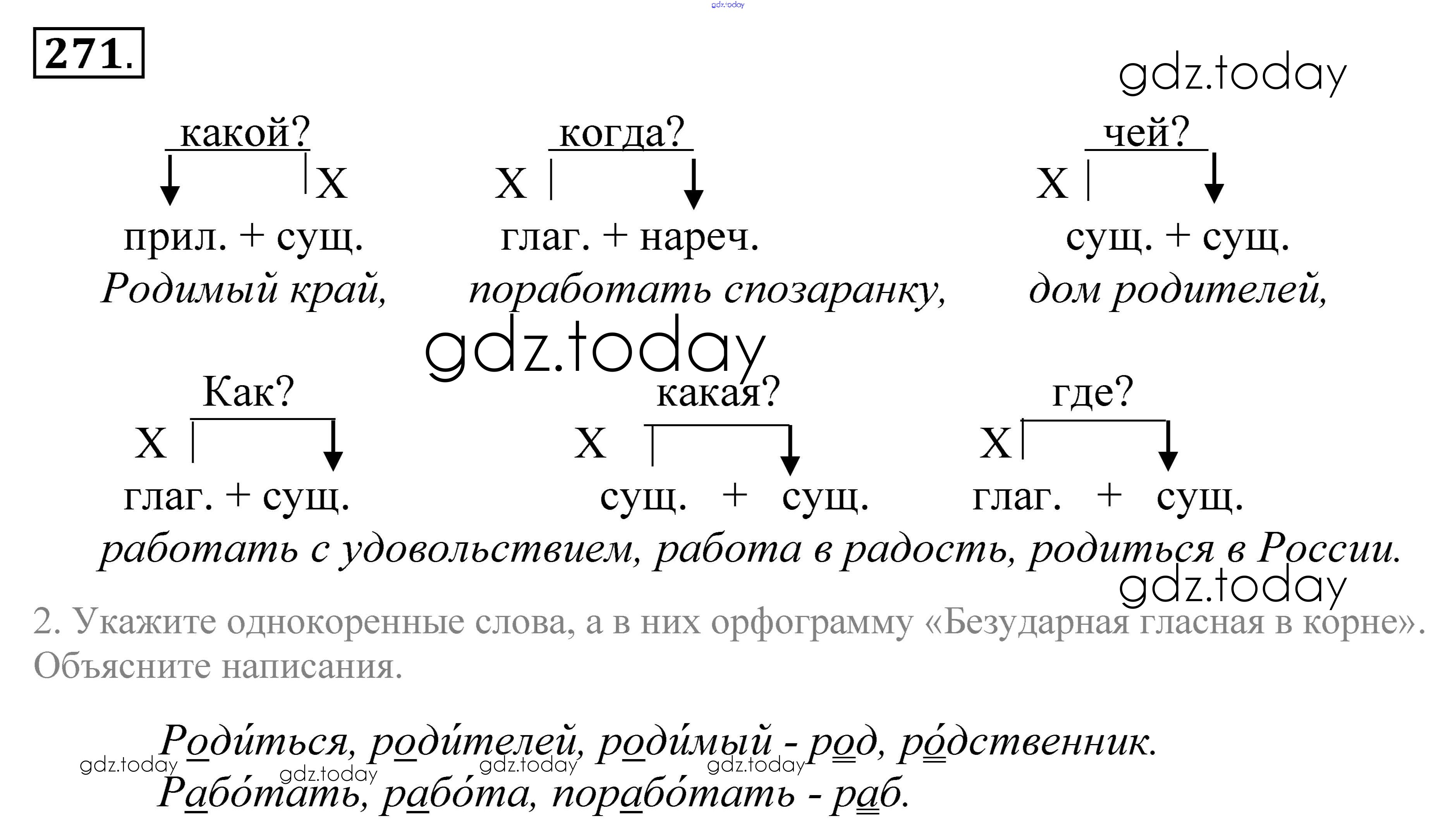 На страницах сайта gdz.today вы найдете учебный и вспомогательный материал, направленный на улучшения знаний школьной программы. ГДЗ - онлайн мир знаний Решение к упражнениям 271 Учебнику по Русскому языку для 5 класса Купалова, Еремеева Дрофа 2015