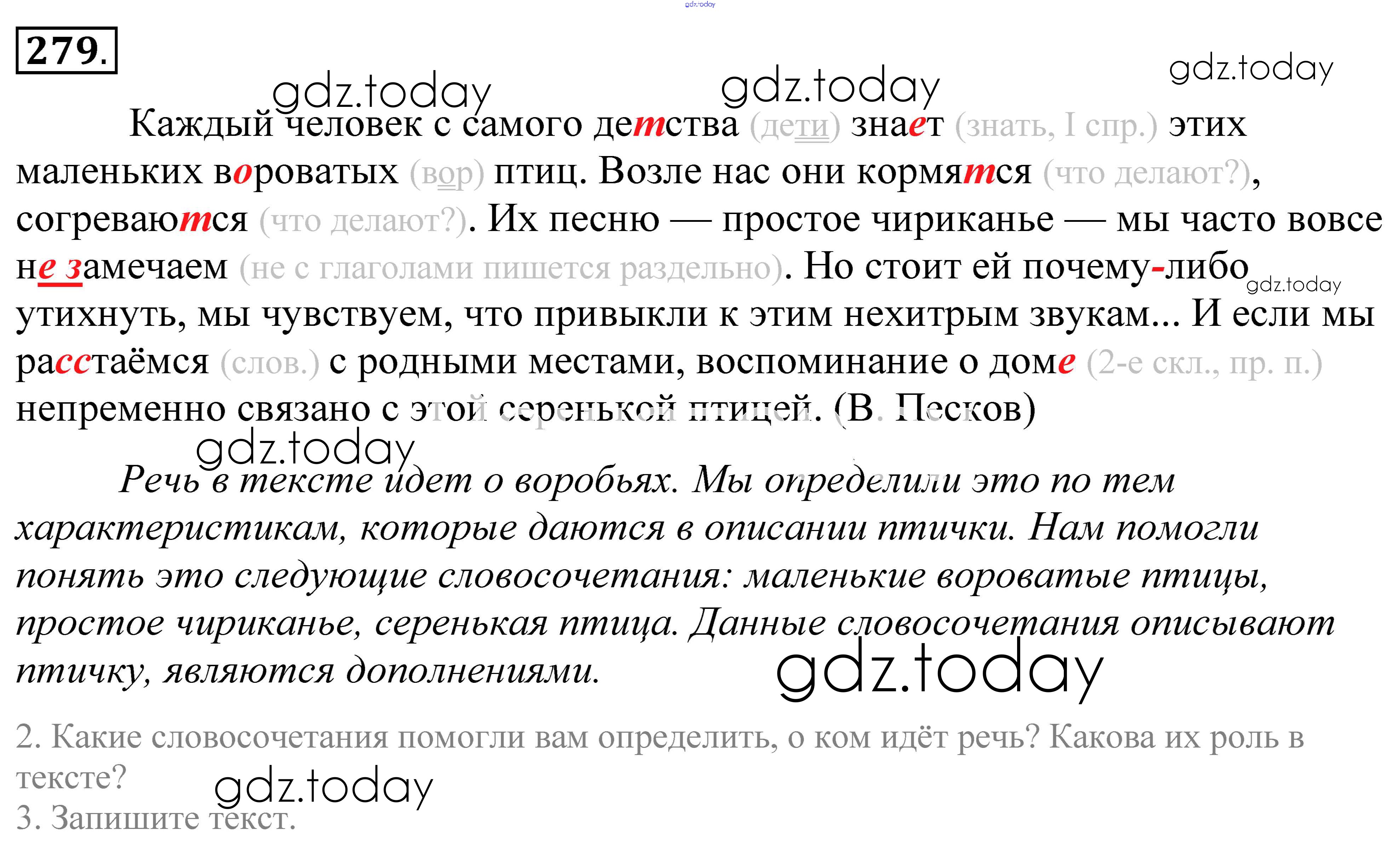 На страницах сайта gdz.today вы найдете учебный и вспомогательный материал, направленный на улучшения знаний школьной программы. ГДЗ - онлайн мир знаний Решение к упражнениям 279 Учебнику по Русскому языку для 5 класса Купалова, Еремеева Дрофа 2015