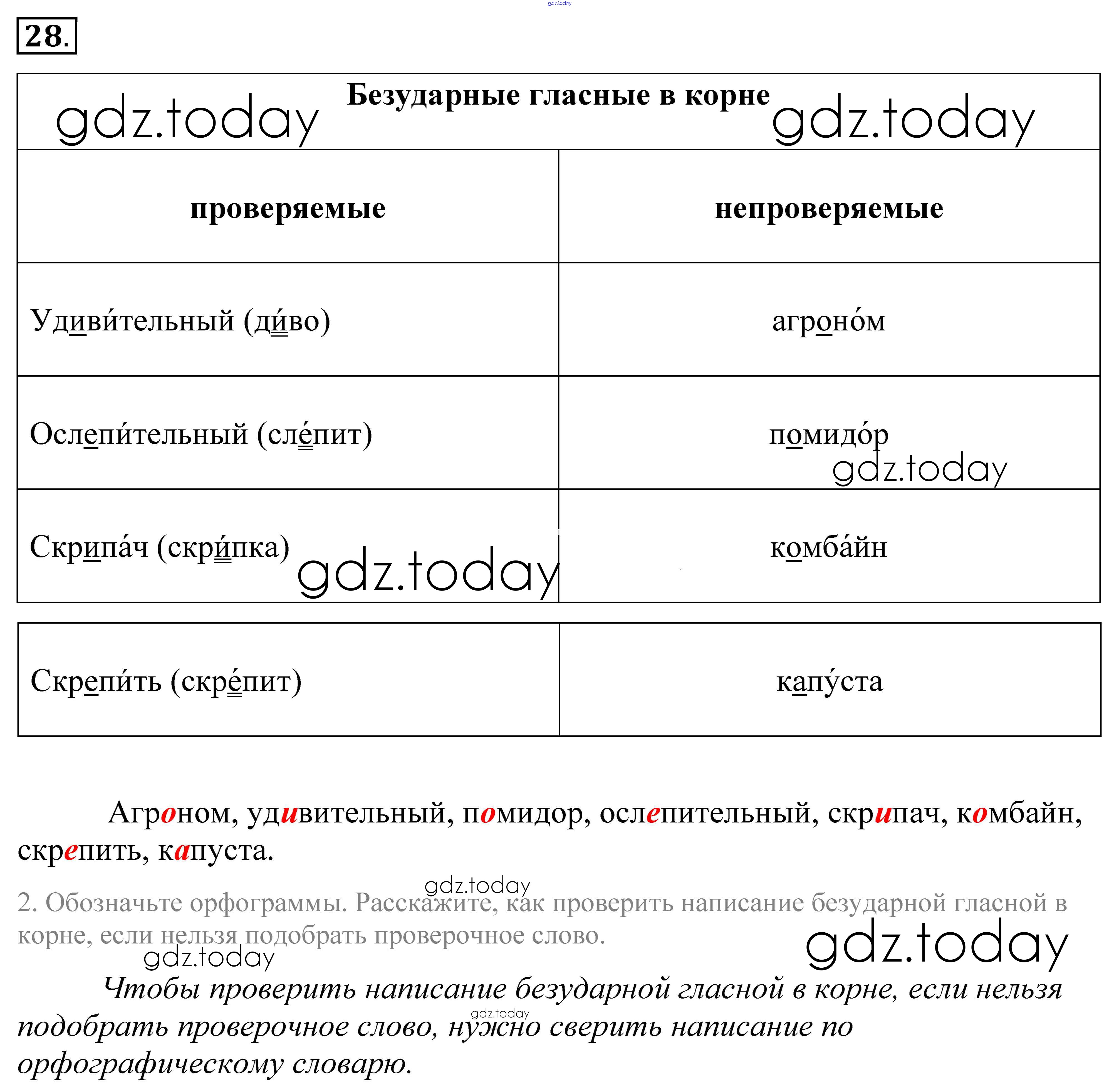 На страницах сайта gdz.today вы найдете учебный и вспомогательный материал, направленный на улучшения знаний школьной программы. ГДЗ - онлайн мир знаний Решение к упражнениям 28 Учебнику по Русскому языку для 5 класса Купалова, Еремеева Дрофа 2015