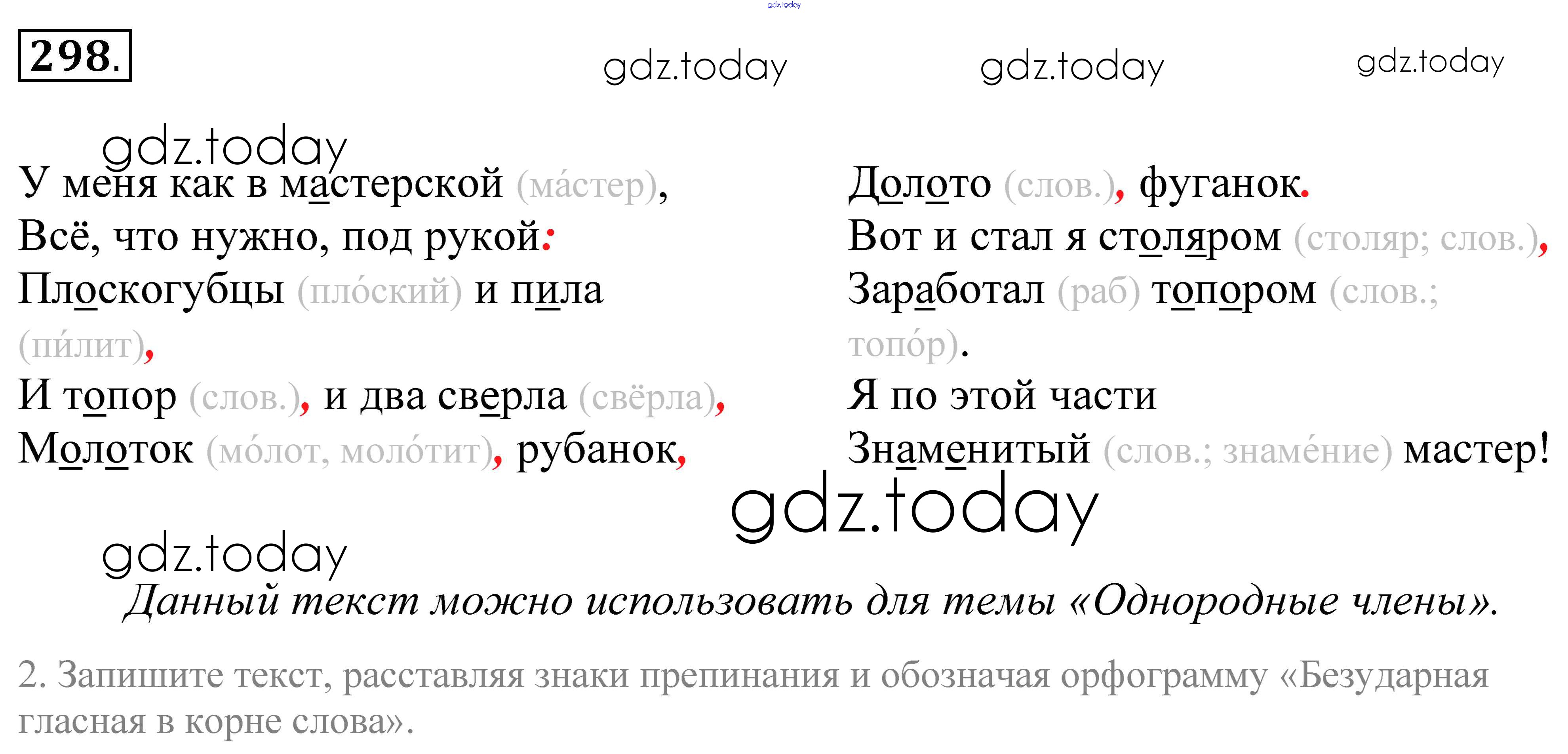На страницах сайта gdz.today вы найдете учебный и вспомогательный материал, направленный на улучшения знаний школьной программы. ГДЗ - онлайн мир знаний Решение к упражнениям 298 Учебнику по Русскому языку для 5 класса Купалова, Еремеева Дрофа 2015