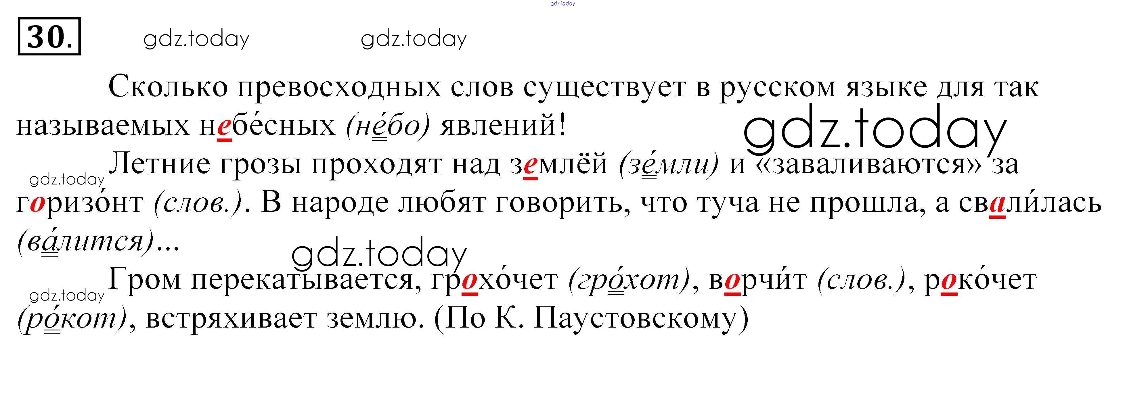 На страницах сайта gdz.today вы найдете учебный и вспомогательный материал, направленный на улучшения знаний школьной программы. ГДЗ - онлайн мир знаний Решение к упражнениям 30 Учебнику по Русскому языку для 5 класса Купалова, Еремеева Дрофа 2015