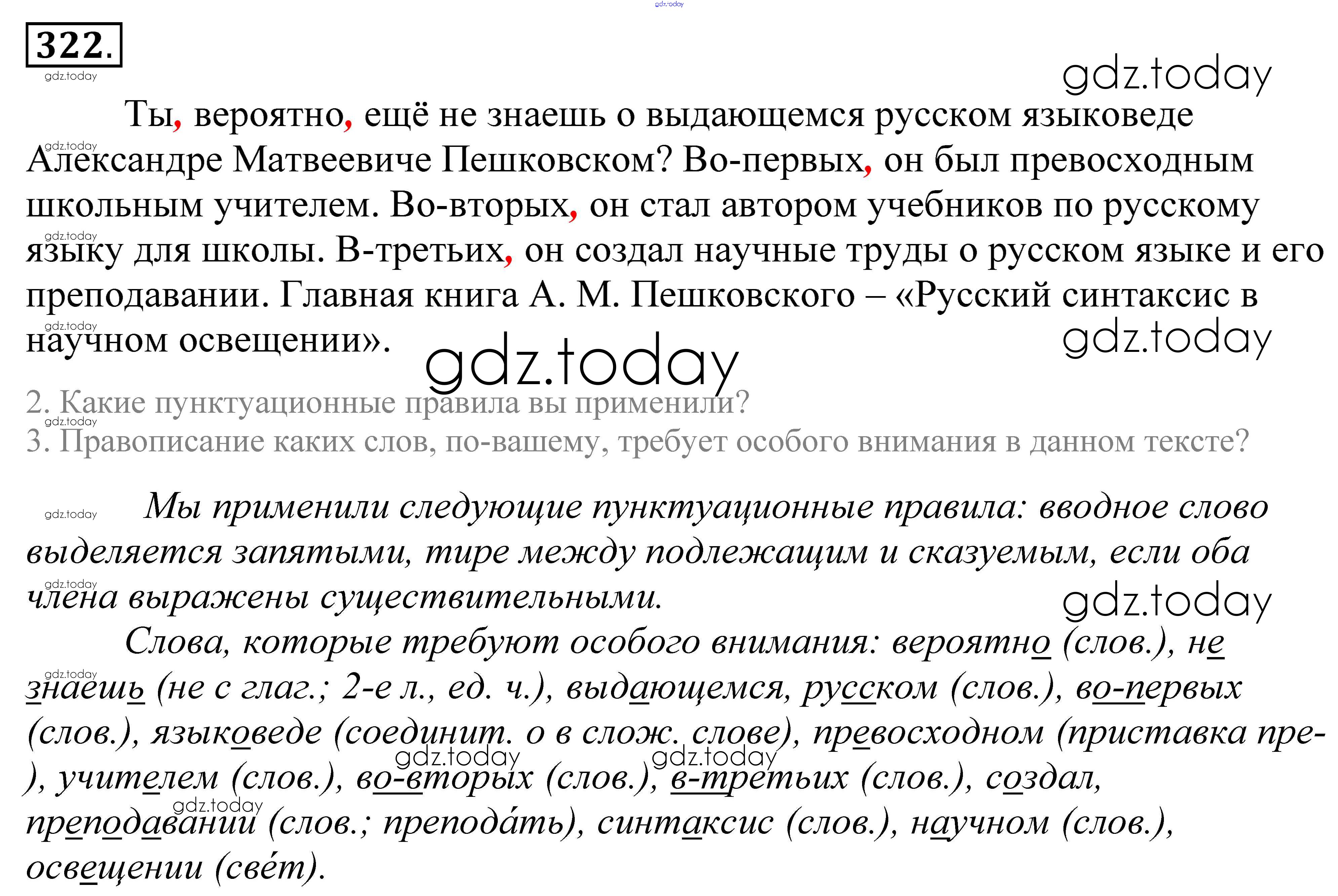 На страницах сайта gdz.today вы найдете учебный и вспомогательный материал, направленный на улучшения знаний школьной программы. ГДЗ - онлайн мир знаний Решение к упражнениям 322 Учебнику по Русскому языку для 5 класса Купалова, Еремеева Дрофа 2015